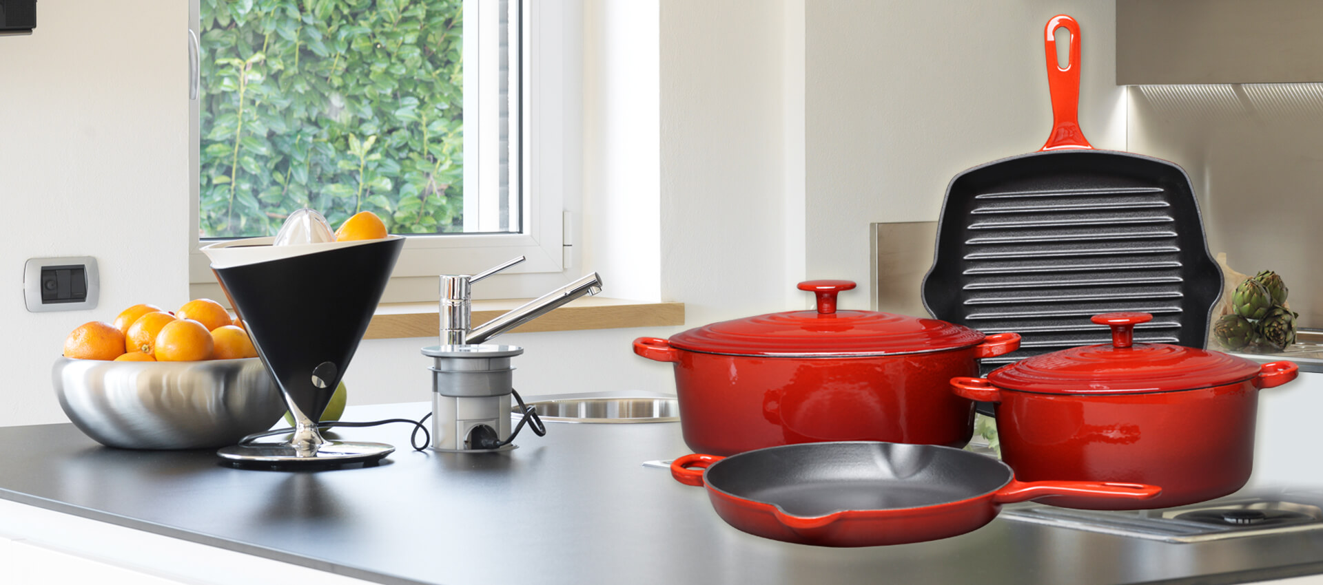 Enameled cast iron is cast iron that has a vitreous enamel glaze applied to the surface. The fusion of the glaze with the cast iron prevents rusting, eliminates the need to season the metal, and allows more thorough cleaning. Enameled cast iron is excellent for slow cooking and drawing flavor from foods